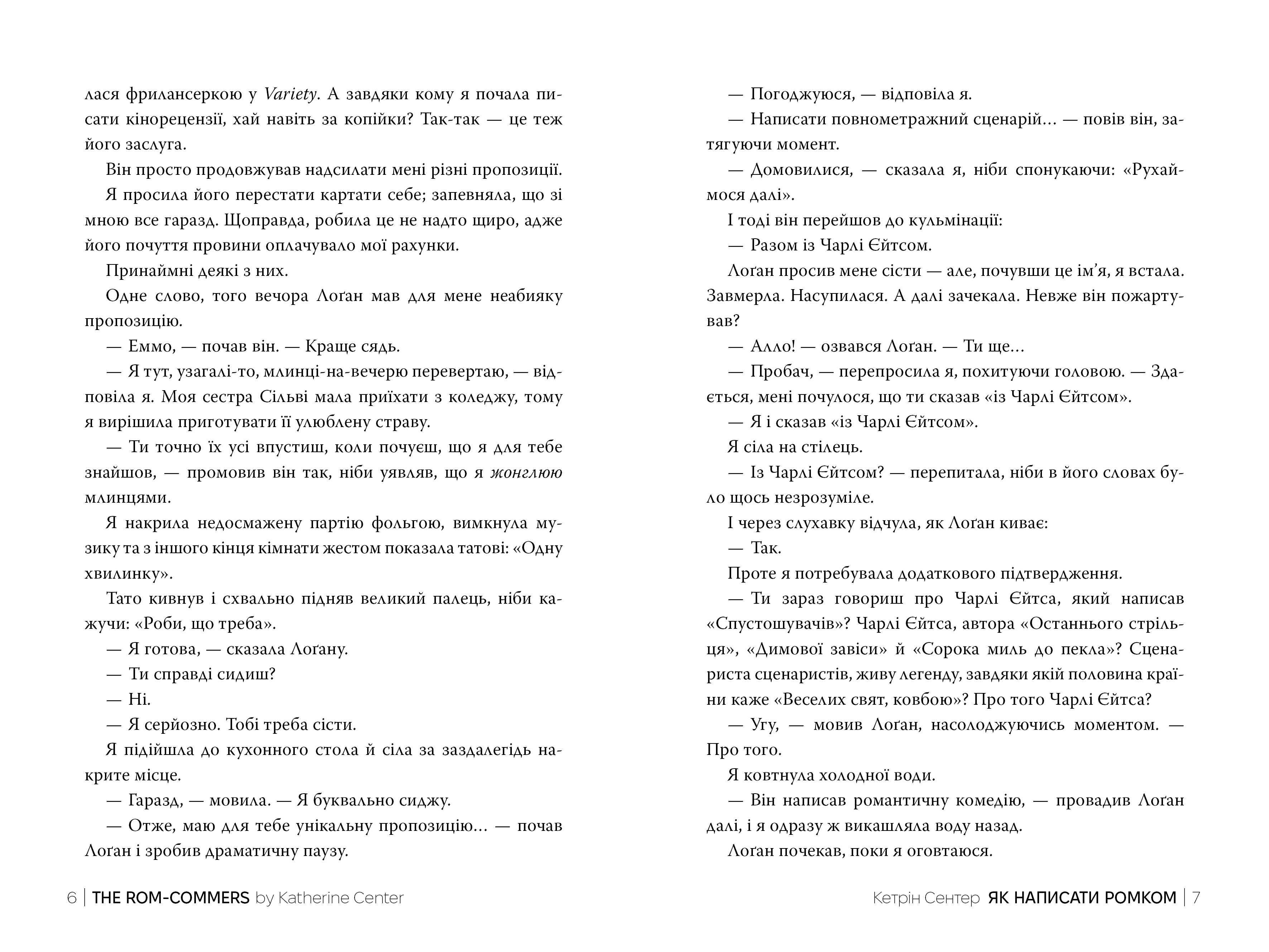 Однак Емма так просто не здасться. Вона побореться і за себе, і за ромкоми — та й саме кохання. Вона покаже Чарлі, що почуття — важливі, навіть якщо доведеться зацілувати його до нестями. А що, як цей поцілунок приголомшить Чарлі? Що, як реальний світ набагато… правдивіший за вигадку? Що, коли історія кохання, яку вони пишуть, зійде зі сторінок — і втілиться в життя?..