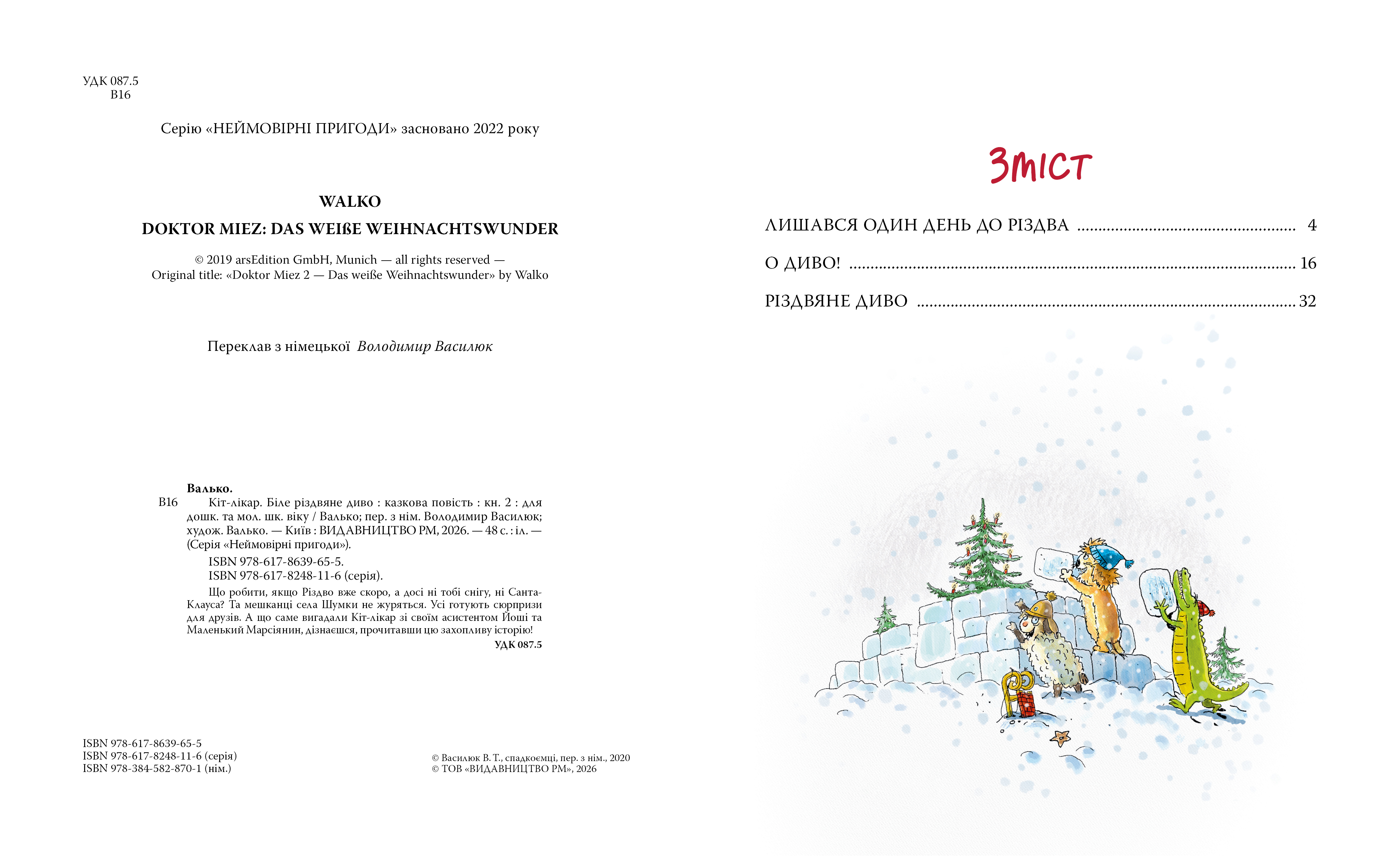 Оригінальна назва книжки: Doktor Miez: Das weiße Weihnachtswunder