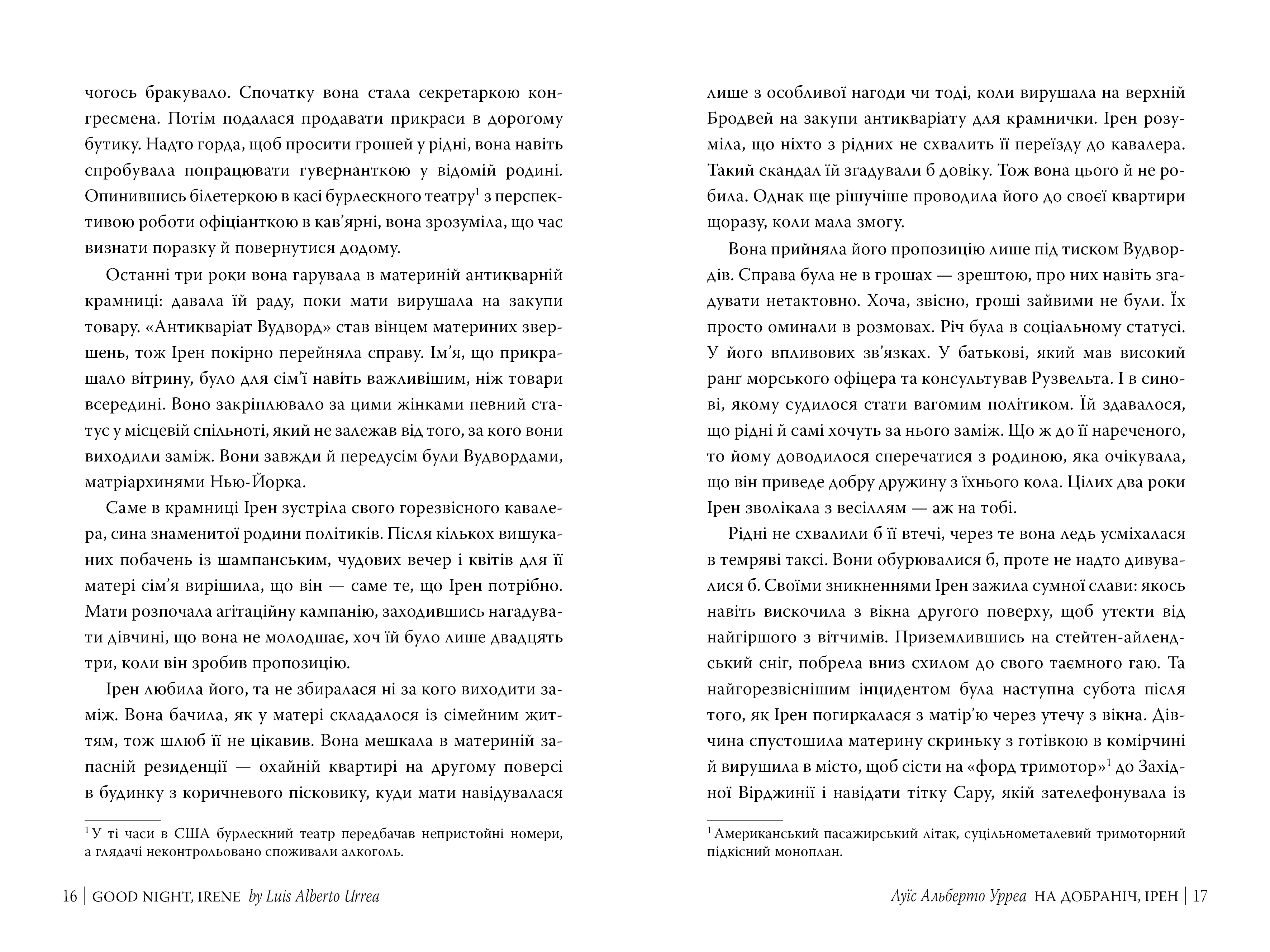 - «“На добраніч, Ірен” – прекрасний, зворушливий роман, який оспівує неймовірну силу та міцність жіночої дружби, водночас проливаючи світло на одну з захопливих втрачених жіночих історій часів Другої світової війни. Натхненний власною сімейною історією – та героїзмом своєї матері-волонтерки Червоного Хреста під час війни – Луїс Урреа створив незабутній портрет жіночої мужності за надзвичайних обставин. Потужна, піднесена та глибоко особиста, “На добраніч, Ірен” – історія виживання, спільноти та сміливості на передовій», – авторка бестелерів Крістін Генна.